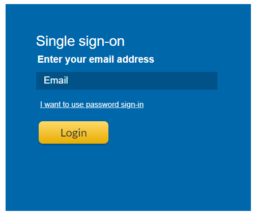 The Single sign-on login page prompts for authentication with your single sign-on email address.