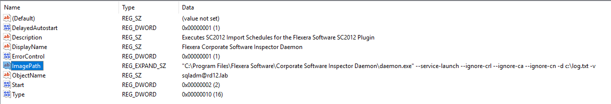 System->CurrentControlSet->Flexera Software Corporate Inspector Daemon->ImagePathExample of an ImagePath value: