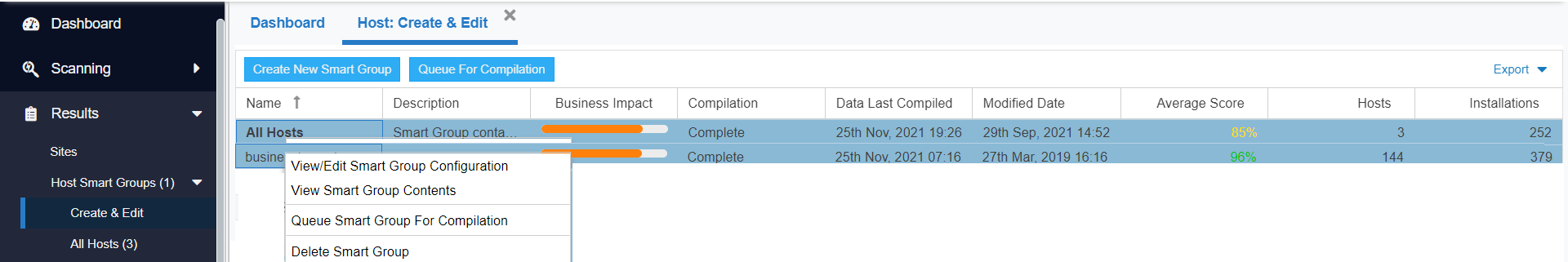 To view the existing configured Host Smart Groups and configure new Smart Groups: